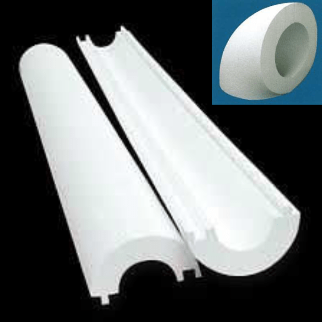 COPPELLE E CURVE ottenute con taglio da blocchi, di polistirolo espanso in svariati spessori; realizzate in due semigusci con incastro.